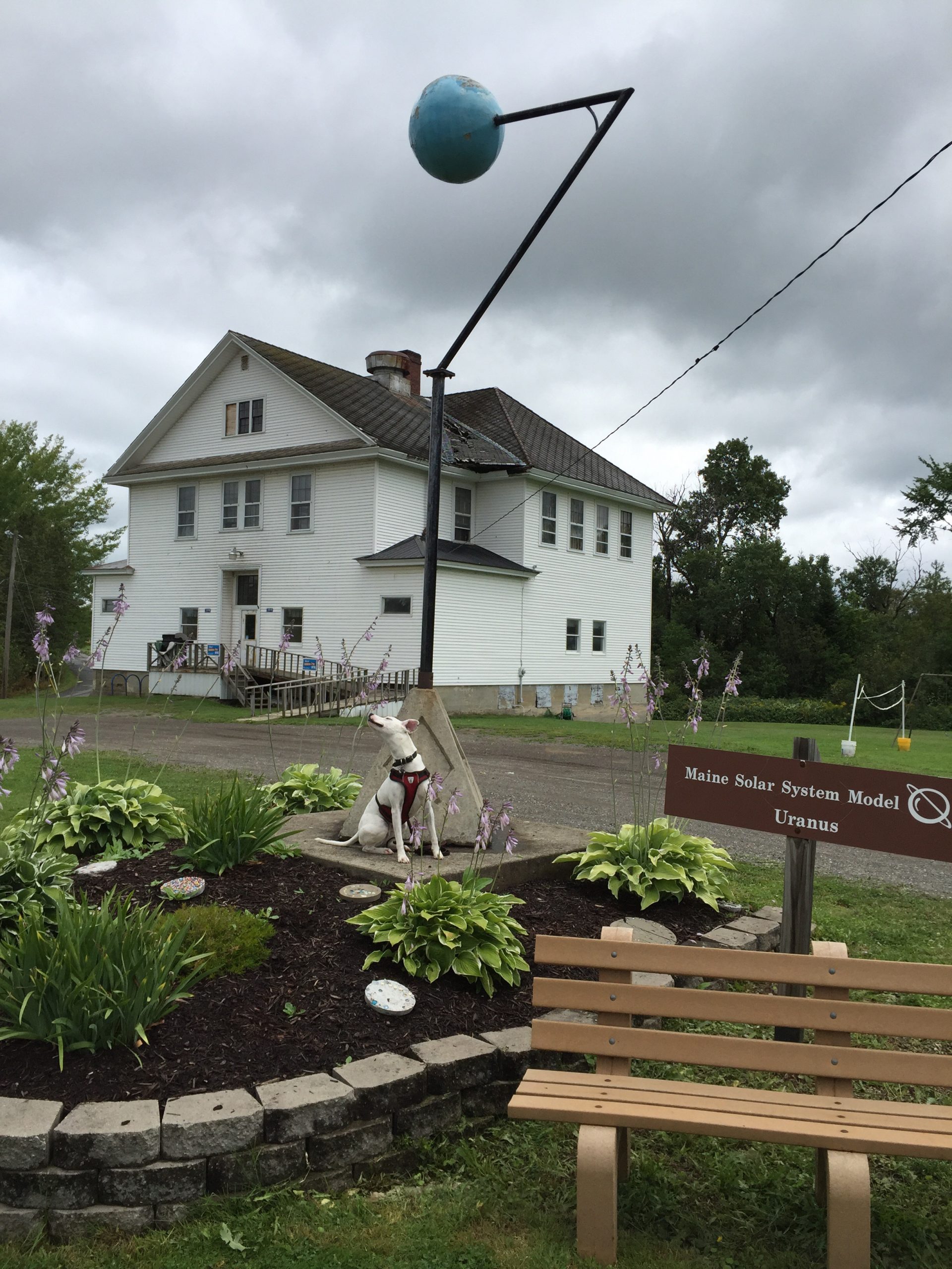 The nice people at the visitors center gave us a map so we could find all the planets. We drove north all the way to Presque Isle and stopped at each planet to take pictures. Tom missed Neptune, Ceres, Mars, and Venus on the way up, so we found those on the way back.