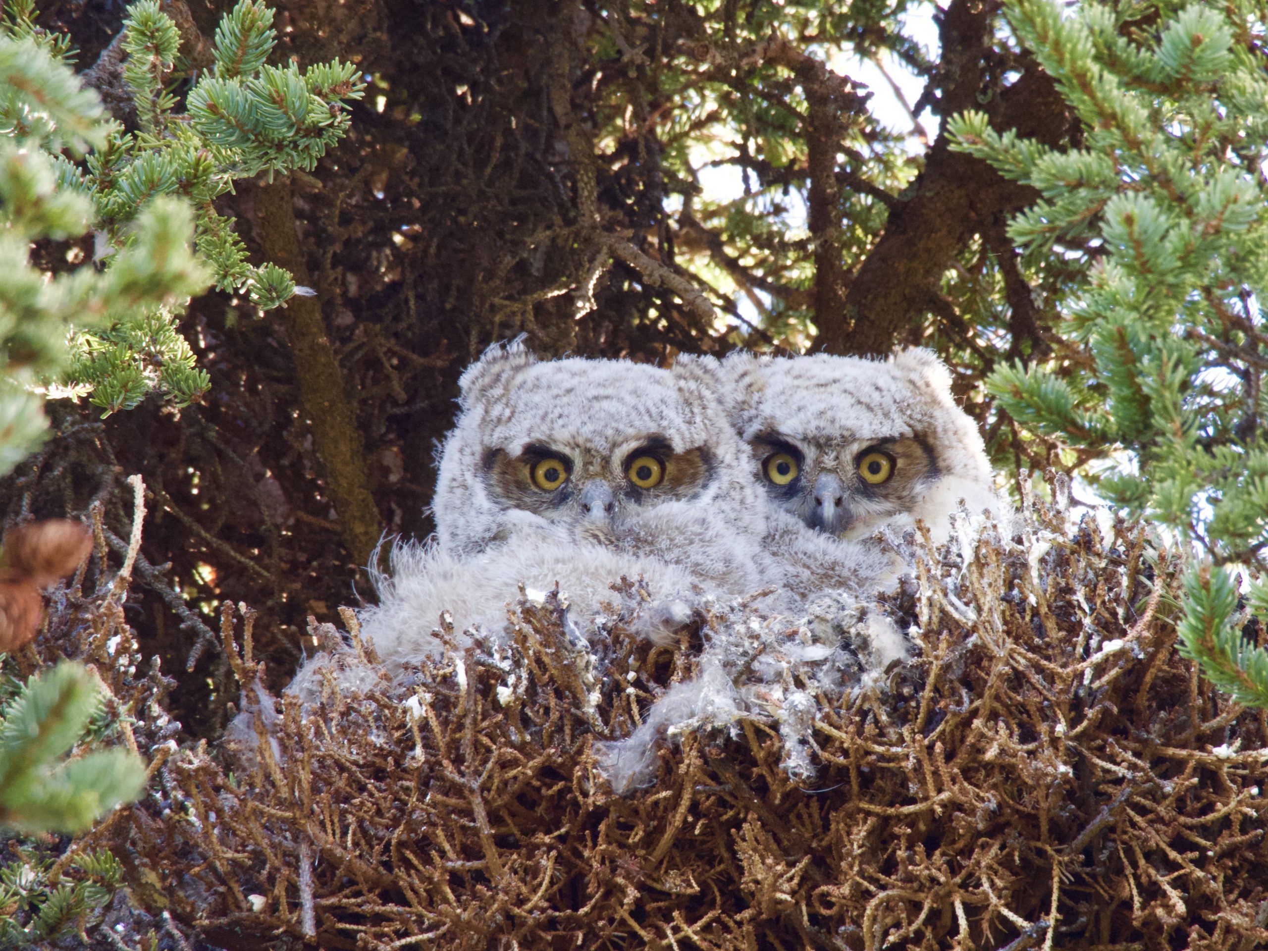 There was a wonderful old tree in the campsite. Our first morning, we heard some loud hooting. Tom said “That sounds like owls!” He went outside to look, but couldn’t find them. We kept hearing them, but couldn’t find them. Finally, on our last day, the campground host came through our campsite with a bunch of official-looking note-makers. Tom cornered them and made them explain. There was an owl nest in the wonderful tree! You could only see it if you stood in a certain spot and looked at a certain place. No wonder we couldn’t find it!
