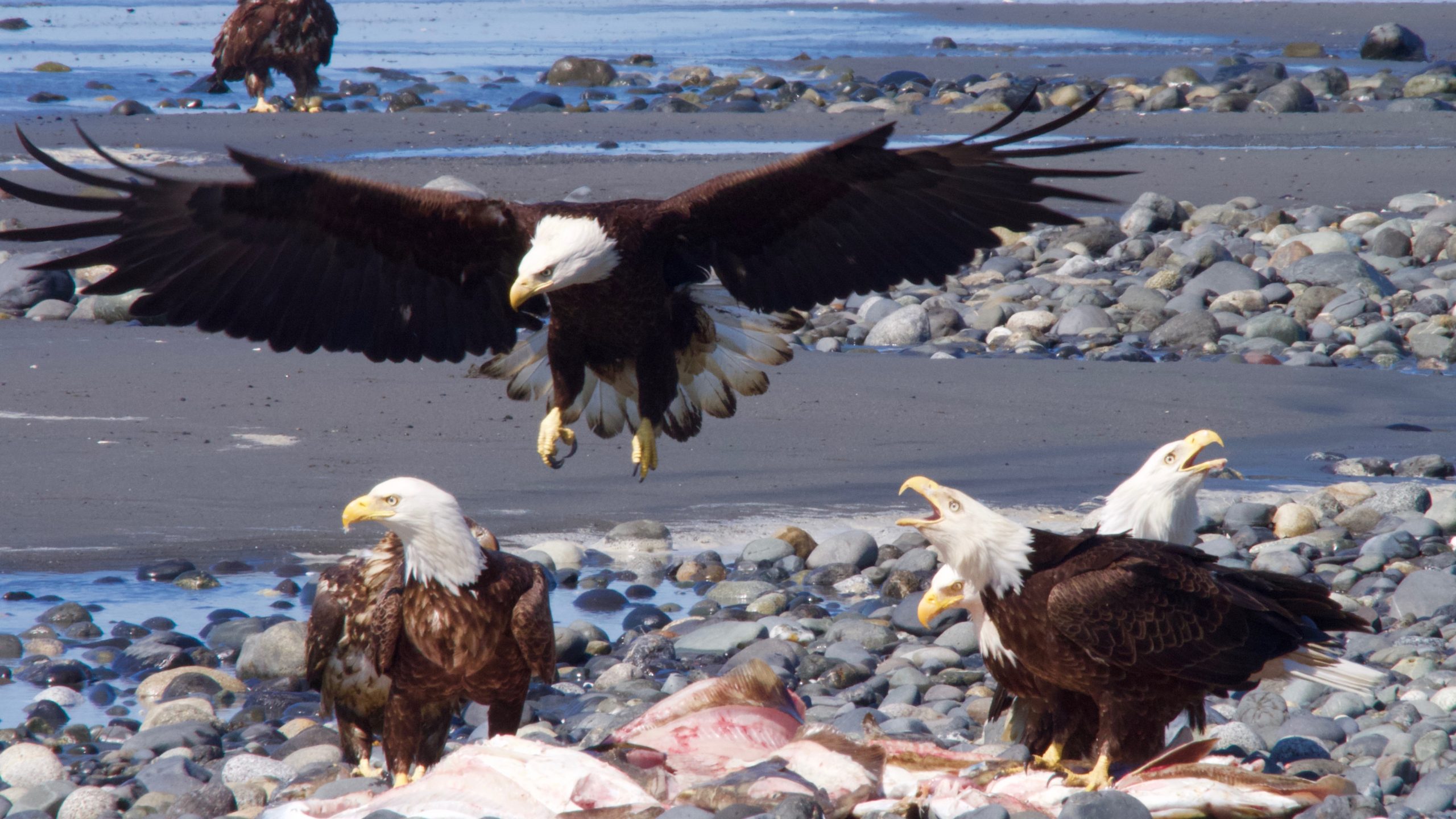 Bald Eagles were everywhere! They liked to sit on the beach and wait for food scraps. Tom got some really good pictures. I thought about chasing the eagles, but they can fly fast and have sharp claws. I heard one carried away a poodle! Or maybe that’s just a rumor. I hope so.