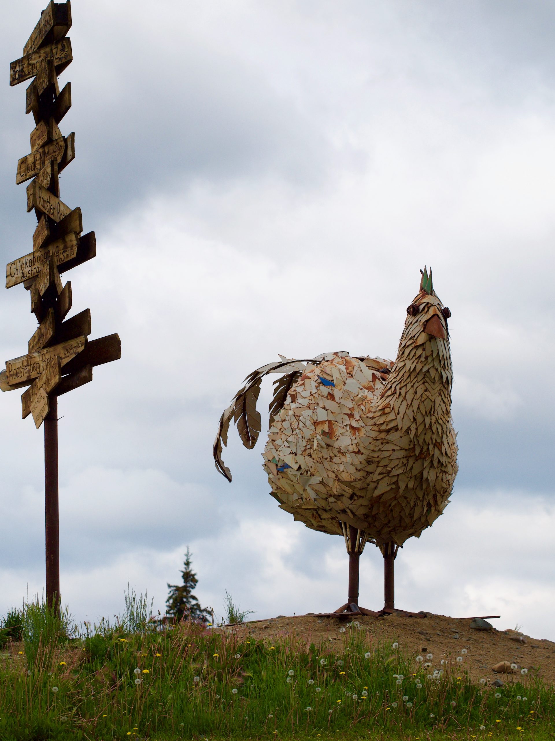 The next day, we visited a little town named Chicken. Such a funny place! I know what a chicken looks like, because Tom’s sister keeps them on her farm. This town has a giant chicken statue! They also have a big music festival every year called Chickenstock.